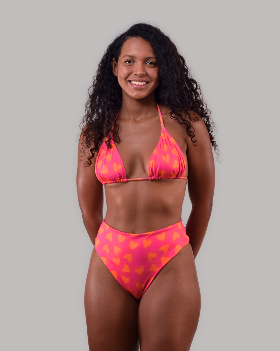 Este bikini combina un top triángulo clásico con una panty alta de corte favorecedor, logrando una silueta cómoda, femenina y elegante.