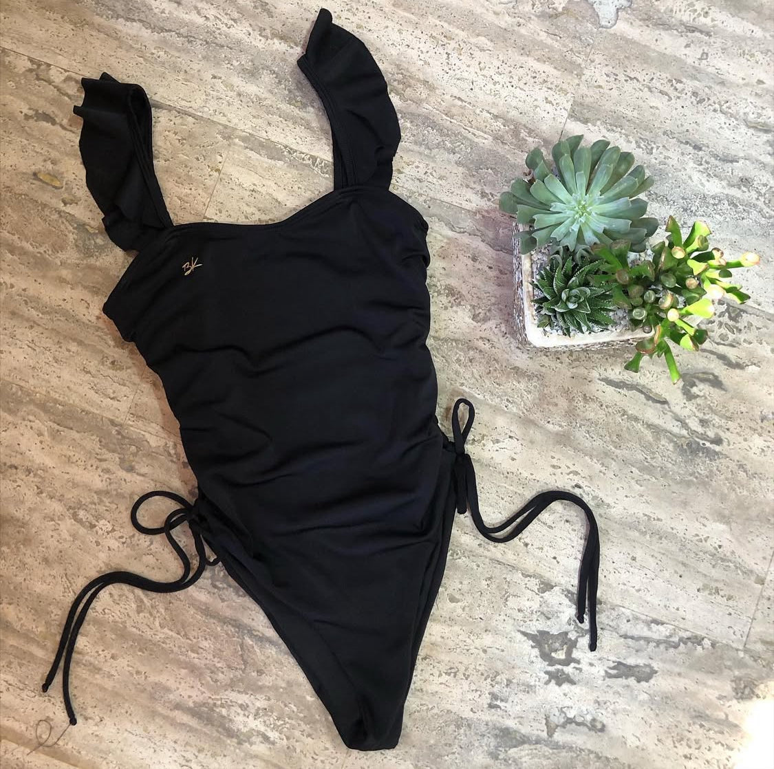 Bikini unicolor en lycra, Panty súper cómoda, trasero ruchadito, top rufles of the shoulder
