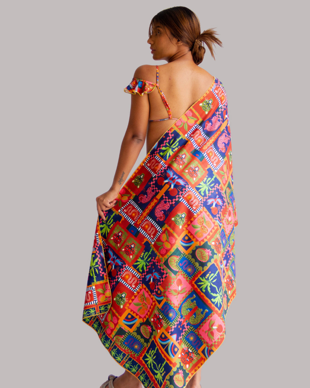 Toalla ligera, suave y de secado rápido con el estampado exclusivo Tropical Moca. Su textura tipo microfibra ofrece una absorción excelente y una sensación agradable sobre la piel, mientras el diseño vibrante en tonos azul, rosa y fucsia aporta un toque artístico y femenino perfecto para complementar cualquiera de tus bikinis. Es liviana, compacta y fácil de llevar a la playa, piscina o viajes.